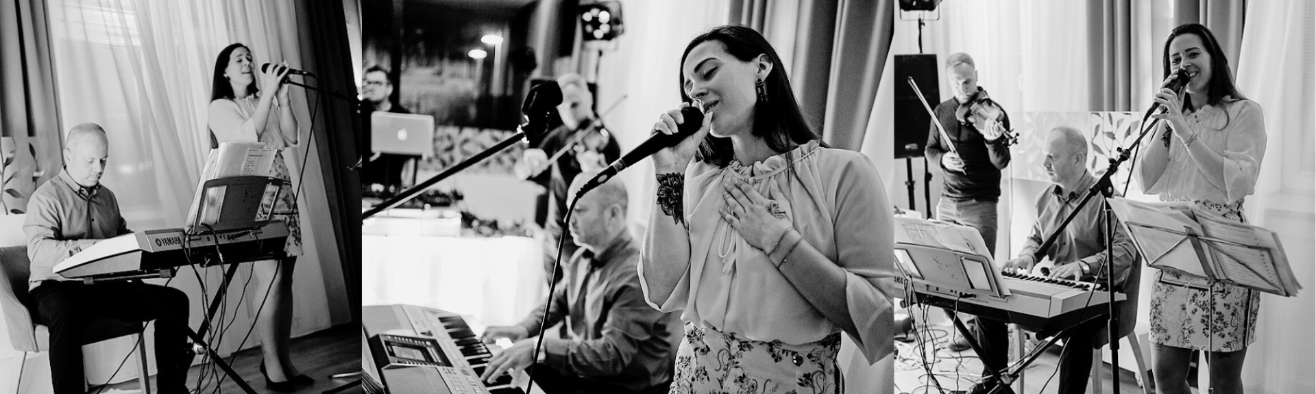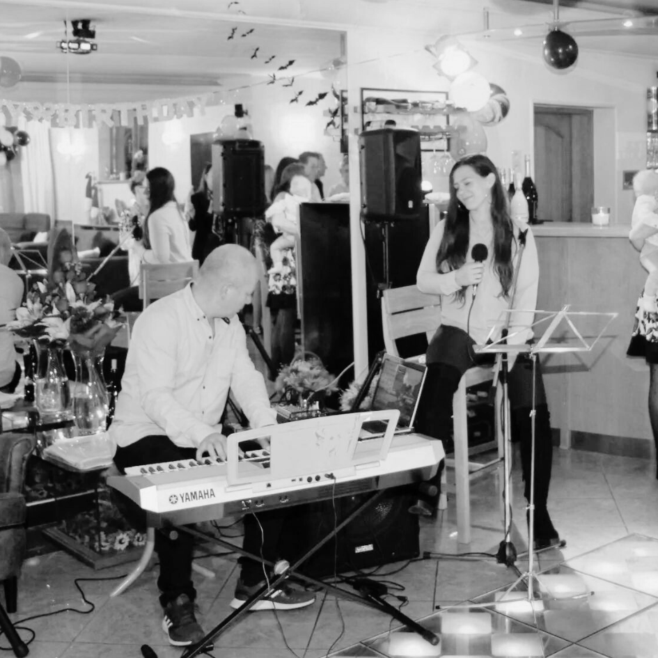 Viac než len duo Hoci je jadrom našej hudby klavír a spev, na fotkách nás často nevidíte samých. Hudba je pre nás o priateľstve, preto naše duo radi rozširujeme. Často si k sebe pozývame skvelých muzikantov – či už huslistu pre romantický nádych, alebo perkusionistu (cajon), keď treba pridať na dynamike a roztancovať ľudí.